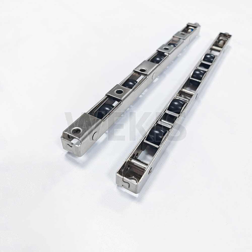 2. Rouleaux en acier inoxydable : Les rouleaux à roues en nylon glissent sans effort sur le rail, réduisant ainsi la friction et le bruit. Ces composants robustes sont conçus pour résister à des années d’utilisation quotidienne sans usure ni grincement.
